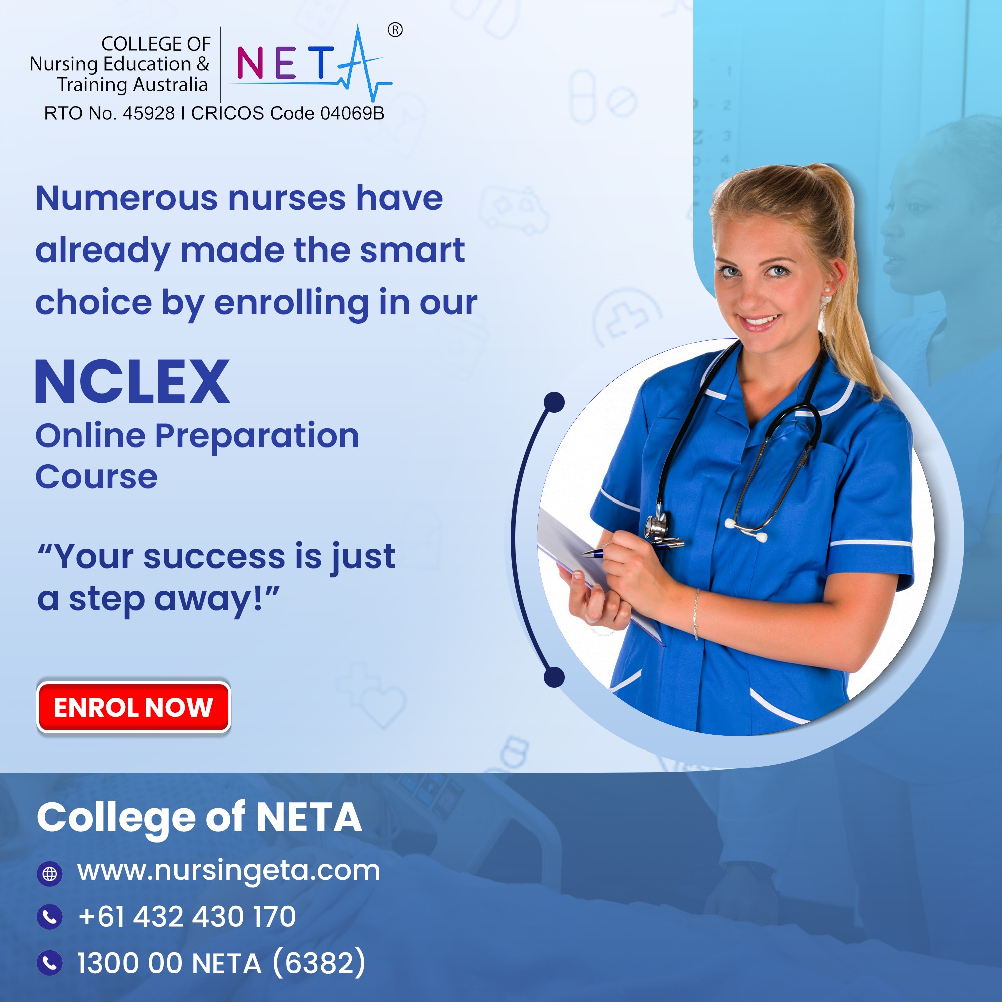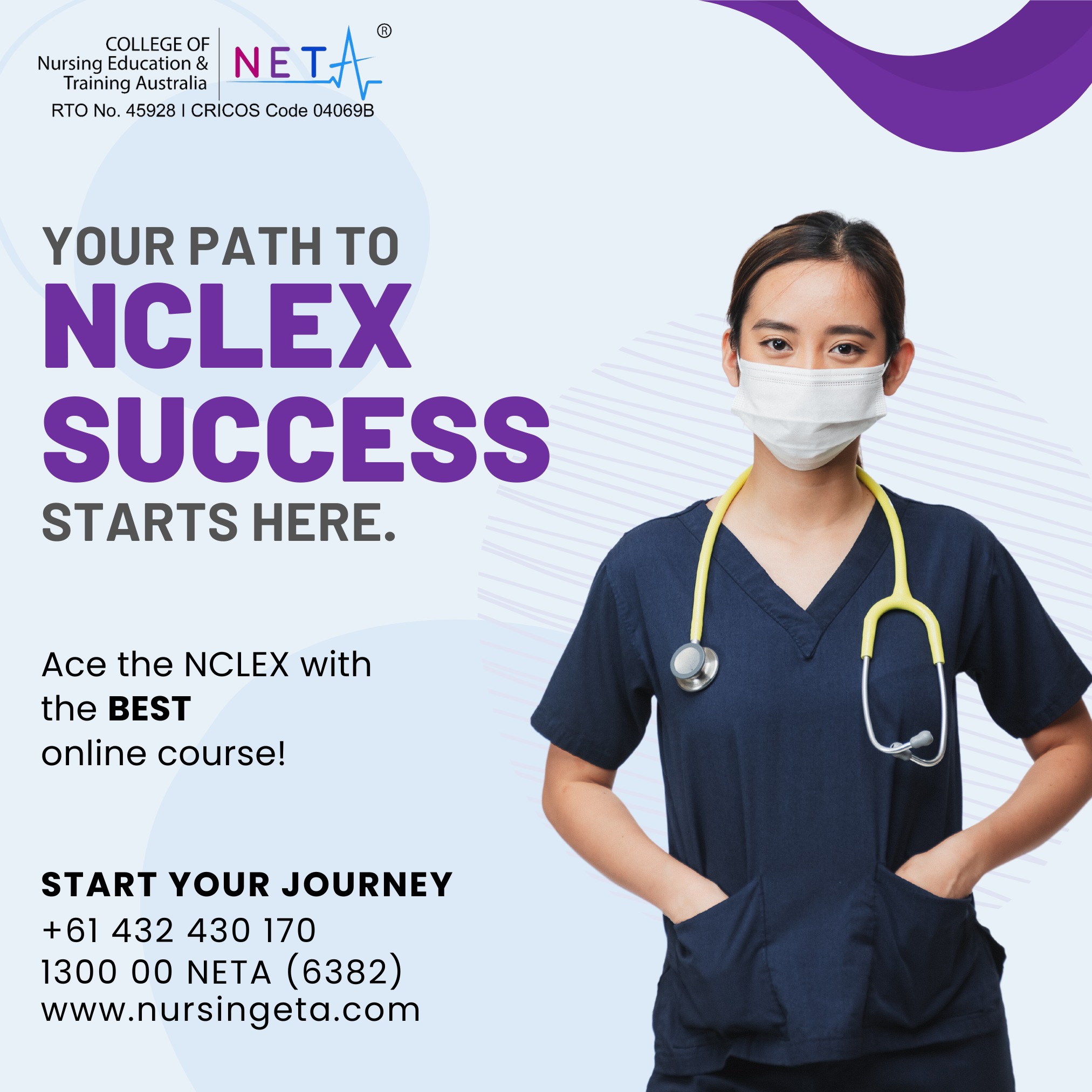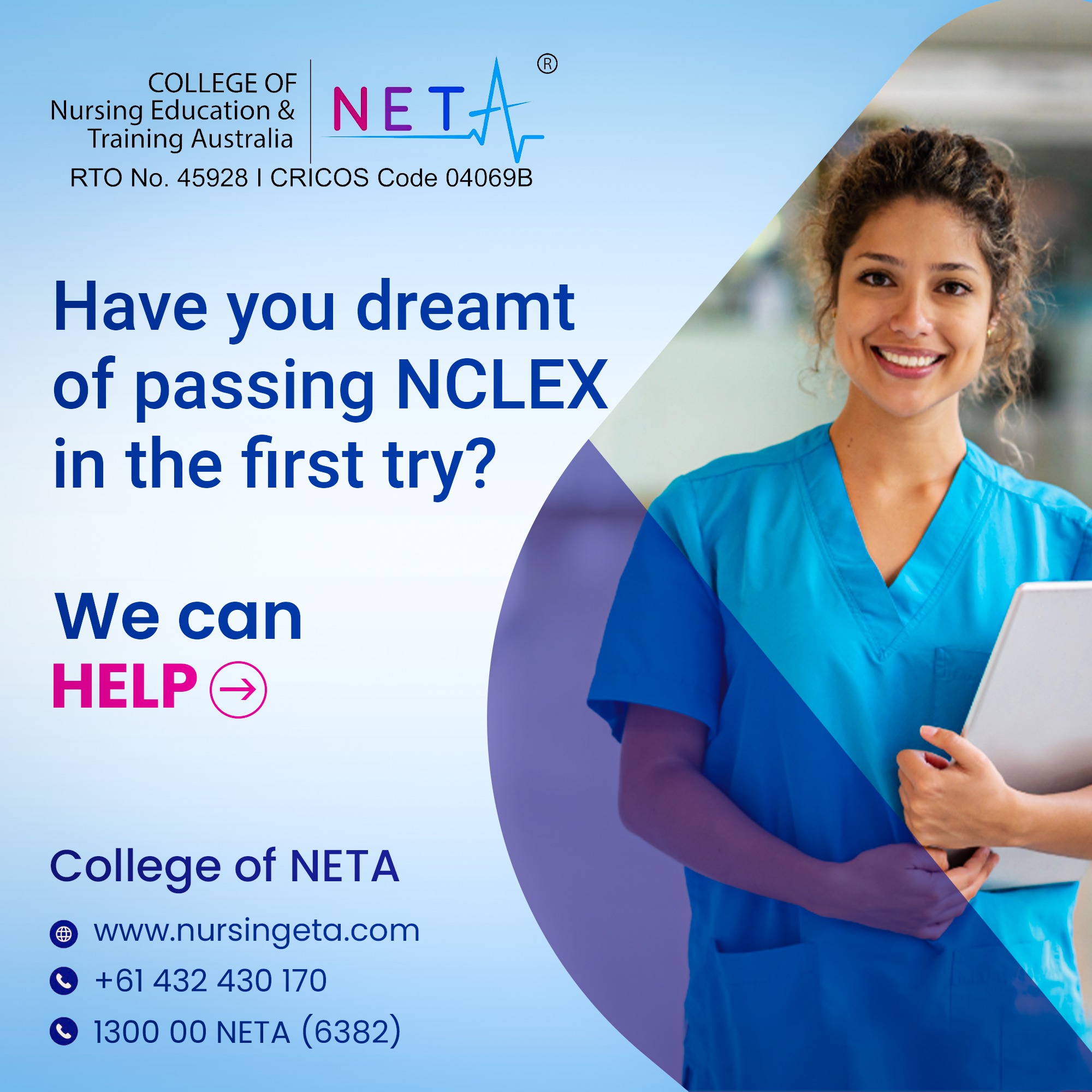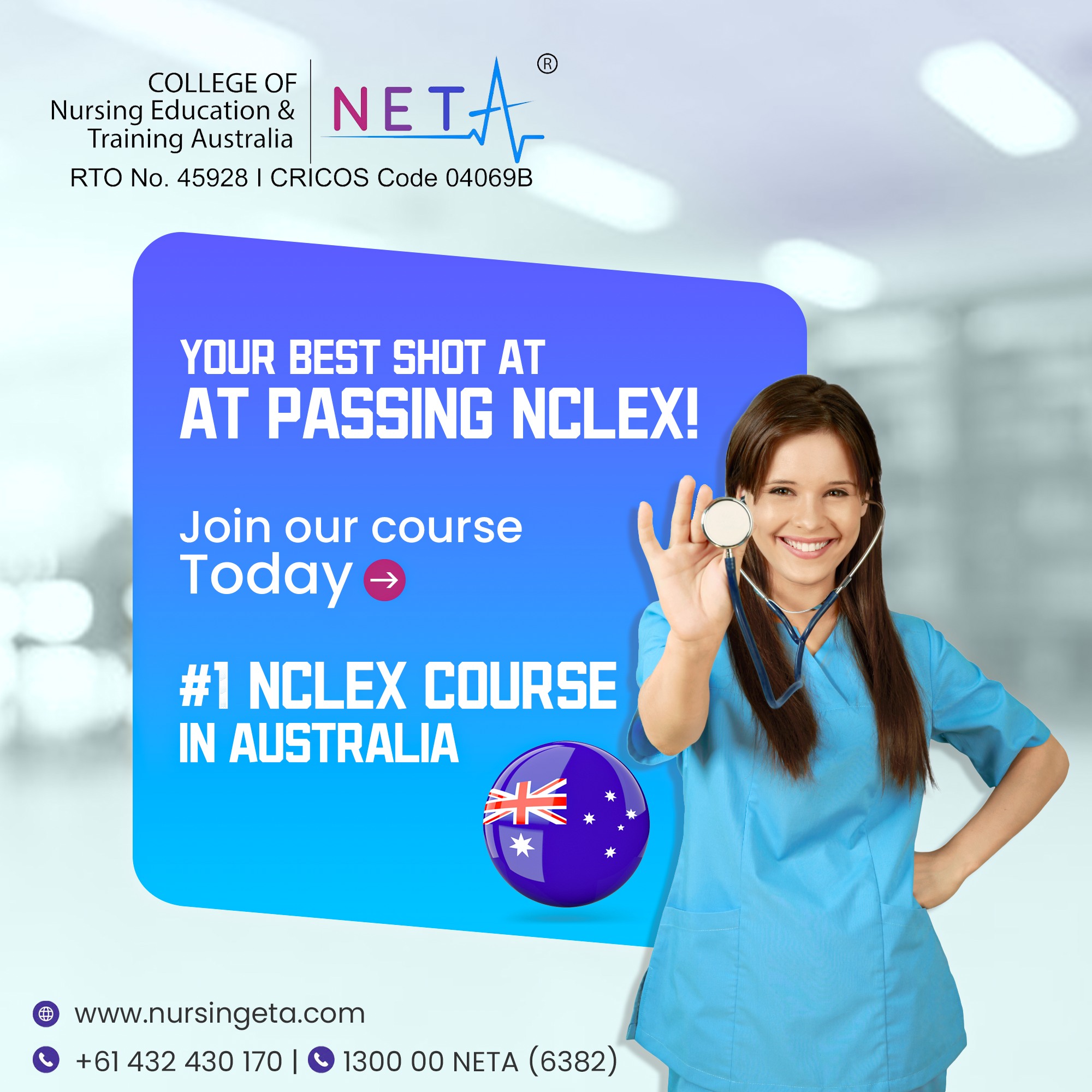NCLEX-P ®, NCLEX-RN® are registered trademarks of the National Council of State Boards of Nursing, Inc (NCSBN ®) College of Nursing Education & Training Australia is neither endorsed by nor affiliated with AHPRA. None of the trademark holders is affiliated with, and does not endorse, College of Nursing Education & Training Australia Products.